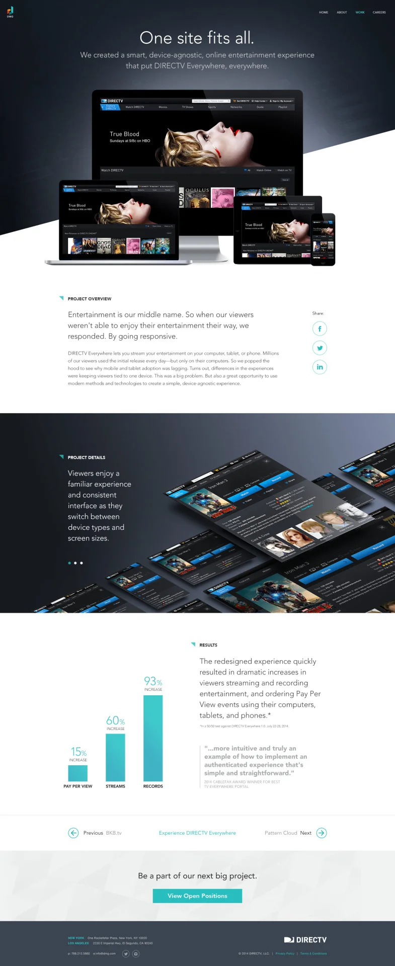 And sell we did, by creating a brand within DIRECTV, the Digital Media Group. Brand-ception, if you will. Our sleek, awesome, animated site showcased how we really roll. This place wasn't full of corporate robots, but creatives who make cool stuff.